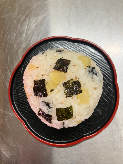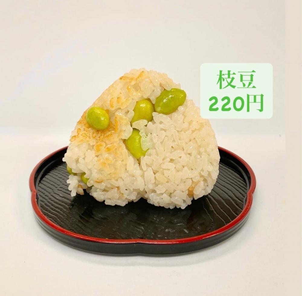おこしやすさくらの人気NO.1商品で、ほんのり塩味が効いた枝豆を混ぜ込んだおにぎりです。彩りも鮮やかで、手軽に栄養が摂れます。